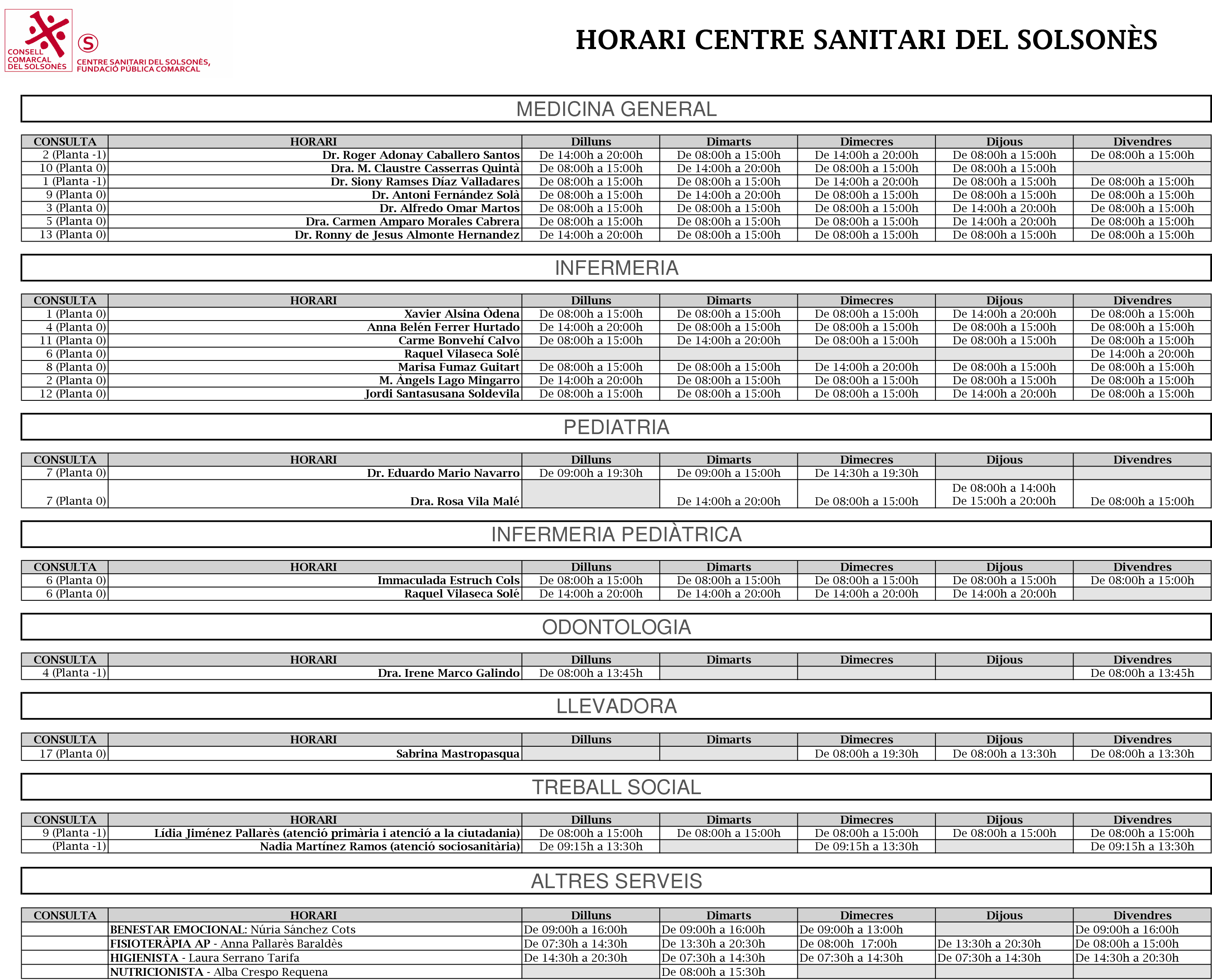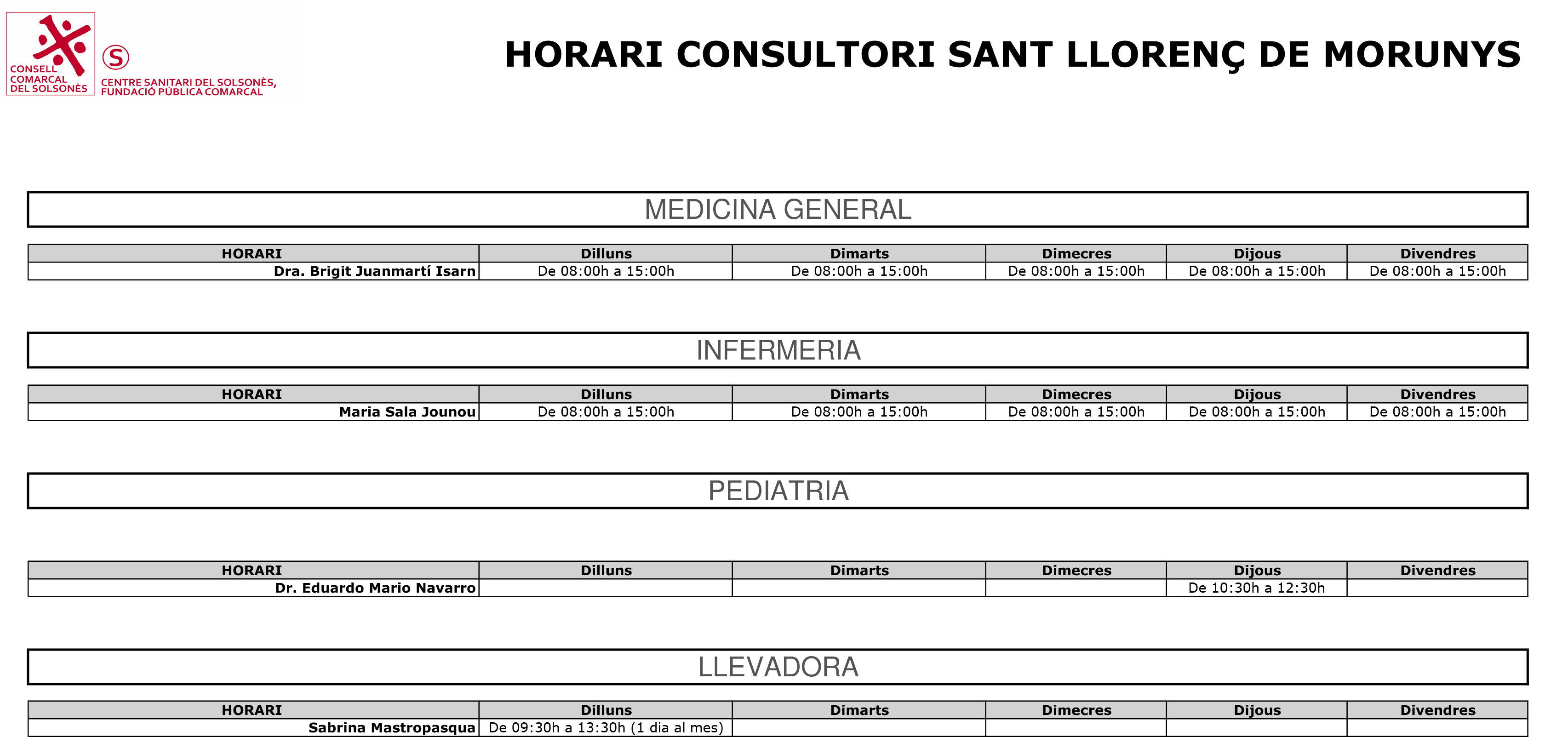 Respecte als altres consultoris de la comarca: